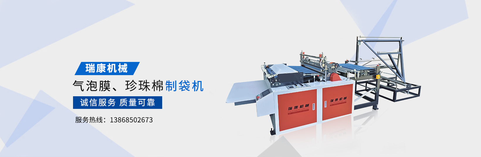溫州瑞康機械有限公司(www_wzruikang_com.l6ndqa.cn)主要生產氣泡膜機,快遞袋制袋機,包裝機,制袋機等設備。瑞康機械是國內生產塑料軟包裝系列機械設備的專業廠家之一。產品質量可靠、誠信服務,深受用戶好評,市場占有率節節攀升。